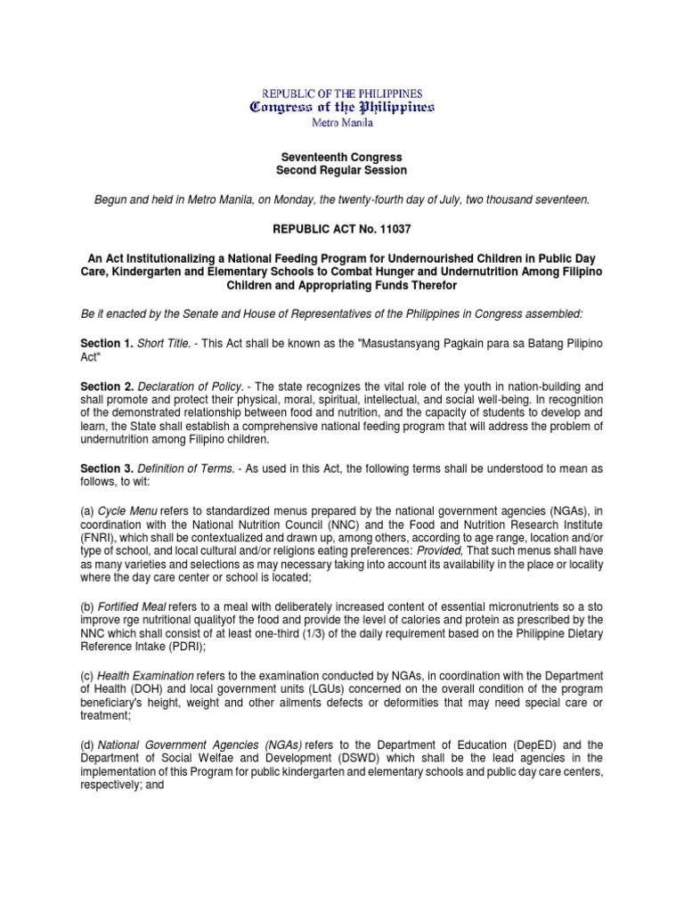 Ra 11037 Masustansyang Pagkain Para Sa Batang Pilipino Docx Malnutrition Food And Drink