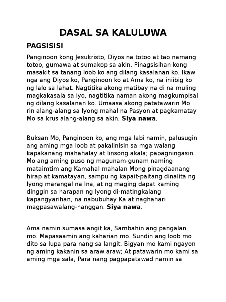 Panalangin Para Sa Kaluluwa Ng Mga Yumao Docx