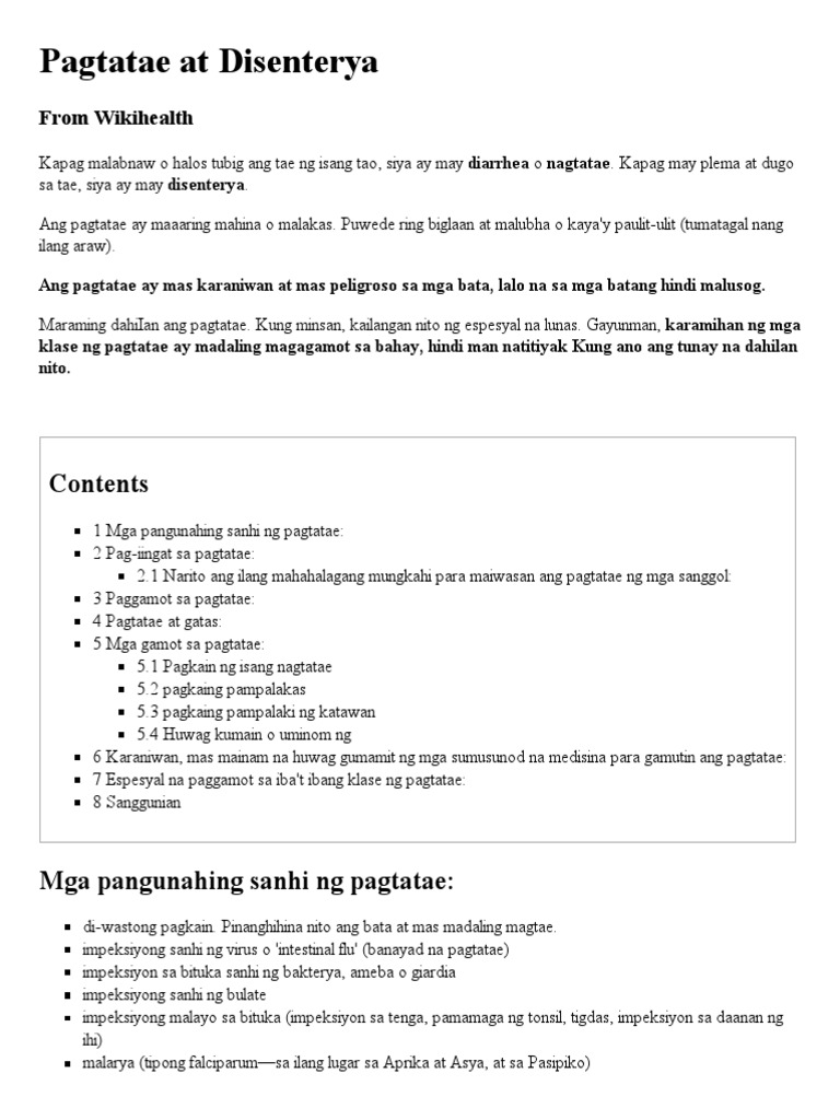 Jump to navigation Jump to search. Maglagay ng apat na tablespoons sa mainit na tubig sa tasa na matamis pero epektibo sa diarrhea. Gawang bahay na Gatorade.