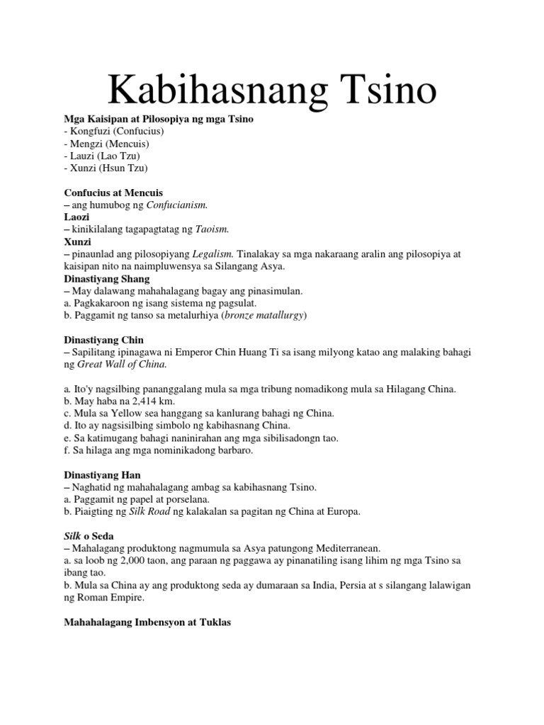 Dome7w and 145 more users found this answer helpful. Na nagmula Shanhaiguan sa silangan ng Tsina hanggang Lop Nur sa Kanluran. 9182015 ANG KABIHASNANG TSINO SA SILANGANG ASYA Ang mga natural na hadlang sa China tulad ng mga disyerto bulubundukin at dagat ang nagbigay-daan sa pagpapanatili ng natatanging kultura ng mga sinaunang Tsino at pag-unlad ng isang kabihasnang tumagal ng.