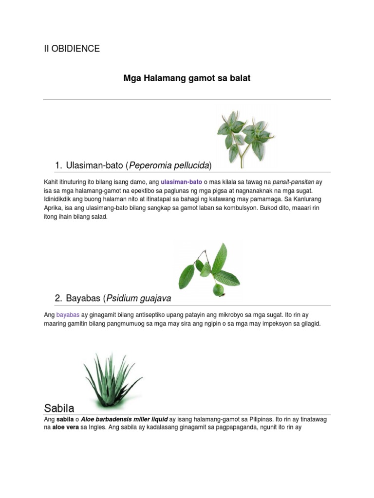 Ang mga halamang gamot ay bahagi nang kasaysayan ng mga Pilipino. Iwasan ang matatamis at magawgaw na pagkain mga tsokolate at nuwes. Tumutulong rin ito para sa mga mahina ang panunaw.